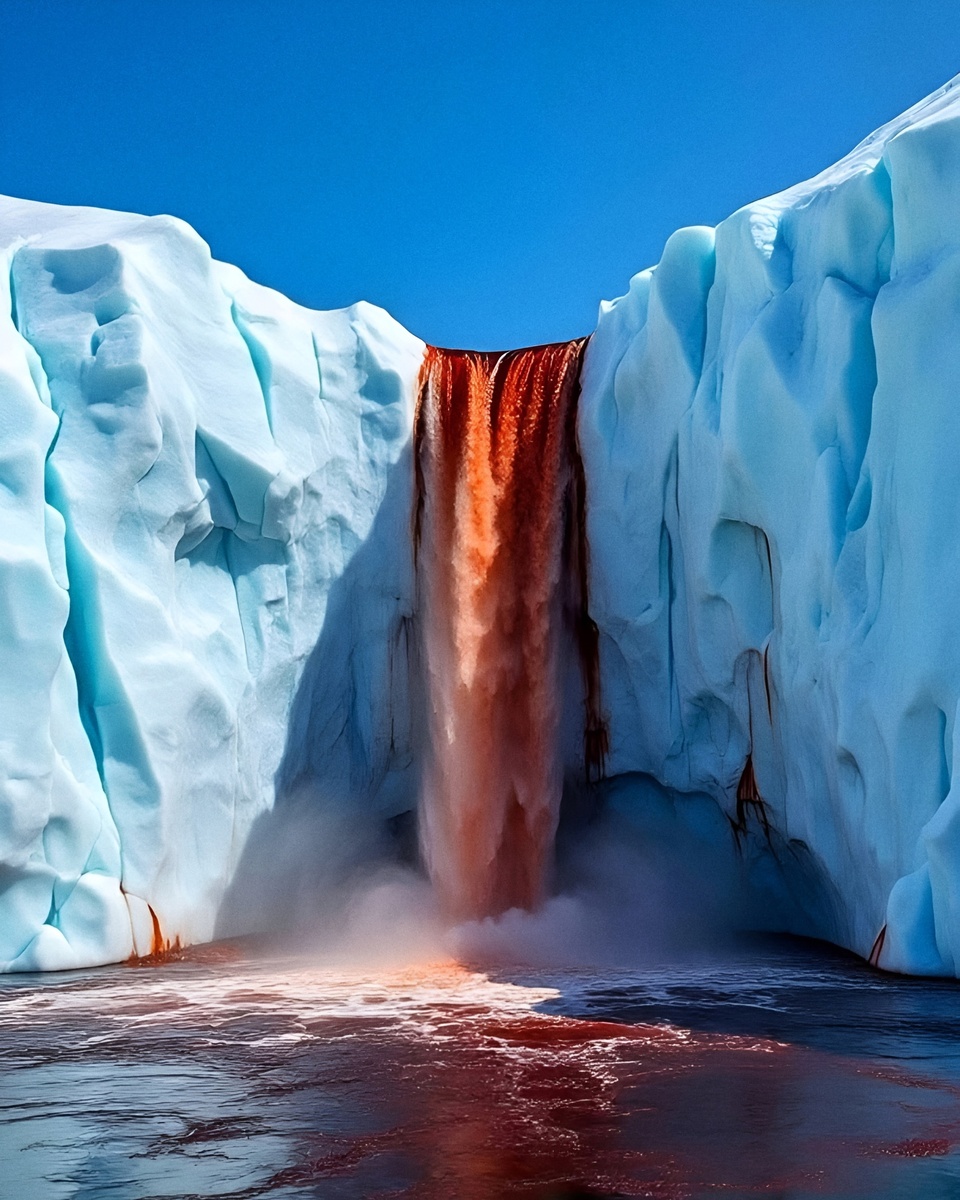 Несмотря на экстремальные антарктические температуры, вода под ледником Тейлора остаётся жидкой: высокая солёность не даёт ей замерзнуть. Просачиваясь через трещины и каналы в леднике, она образует один из самых загадочных и необычных природных феноменов планеты.
