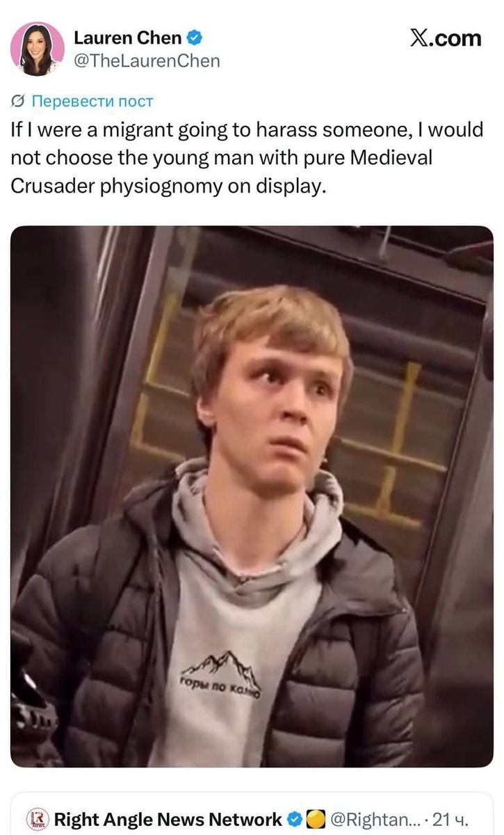 Канадский блогер Лорен Чен оставила свой отзыв о происшествии, отметив сходство внешности противника с рыцарем из прошлых веков. Теперь же русского парня в толстовке с надписью «Горы по колено» активно обсуждают в Twitter, окрестив его "крестоносцем" и создавая на основе его изображения многочисленные юмористические картинки.