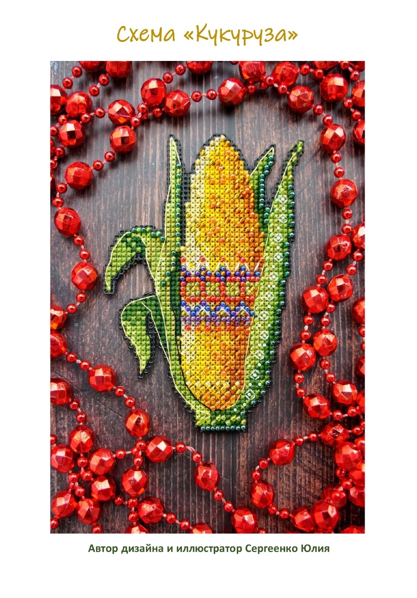 Ещё одним большим дизайном ( по крестикам) из СП"Со вкусом" 2 от Юлии Сергеенко была "Кукуруза". Ее я взяла шестой по счёту в работу. Размер в стежках: 40 на 60 крестиков; Размер в см: 7,3 на 10,9 см (для Аиды 14 каунта); Палитра мулине: ДМС (13 цветов); Бисер: Preciosa ( 10 цветов); По Саге: 963 крестика, 337 стежков бэкстича, 27 французских узелков, 381 бисеринка ( 1540 по марафону крестиков). Хотя цветов мулине и немного на "Кукурузе",но они такие красивые! Сочные,яркие, солнечные! У меня подбор ниток в палитре Гамма и СХС. Вышивается дизайн очень легко! В первый день я осилила большую часть крестиков. Ещё один плюс для меня отсутствие блендов. На второй день готовы были все крестики. И уже традиционно на третий день я работу завершаю. Мне понравилось крутить французские узелки. Я делала их в три обвития и они получились у меня удачнее обычного. Бэкстича здесь совсем не много. Самое интересное - это конечно же пришивание бисера. Подбирала я его близко по ключу,но все равно что-т
