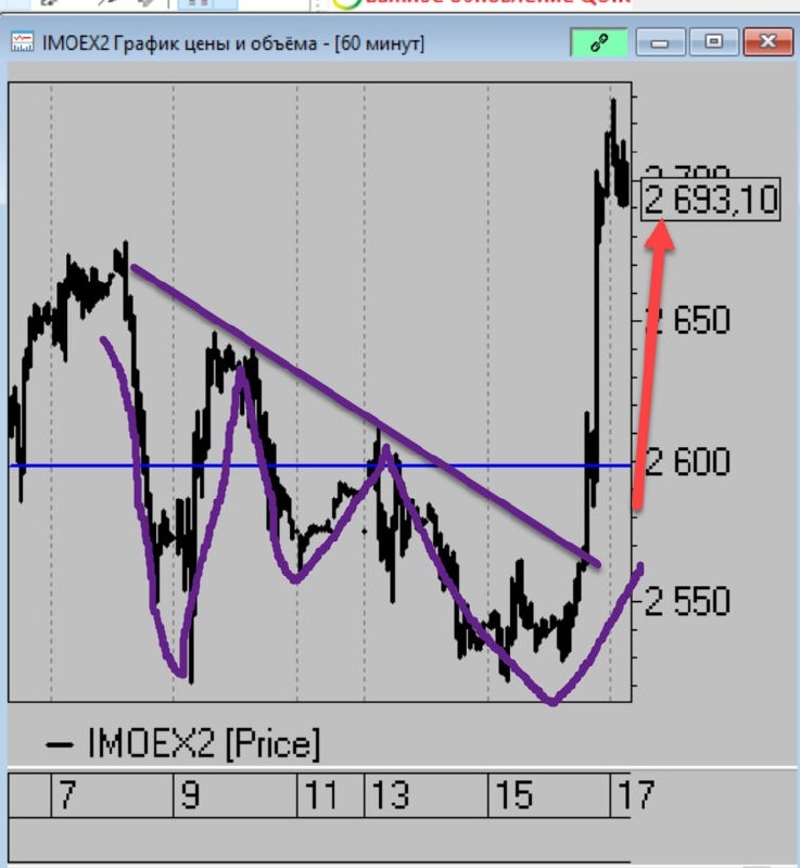 На обед пятницы. Рынок у нас закономерно откатывает, после вчерашнего мегавыноса, который кто смотрел видео из предыдущего поста знают люди, был вызван выносом шорта частично. Сегодня многие фиксируются во первых перед встречей Трамп-Зеленский. Не все смотрят нормальную аналитику. Во вторых например люди участвующие в Допке ВТБ вчера оказались в плюсе по ней на 5-6% менее чем за месяц. Часть людей конечно фиксируется. Самое главное как помните, писал вам что для разворота на недельках нам нужно уходить к 2600 и выше к концу недели, чтобы тот рисующийся разворот сработал. Разворот на неделях мы уже в любом случае нарисуем. А дальше будем смотреть на следующую неделю.