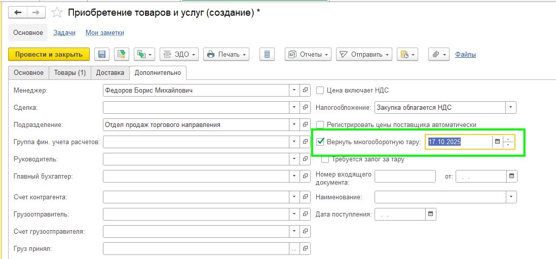 📦 Возврат многооборотной тары в Управление торговлей 11.5