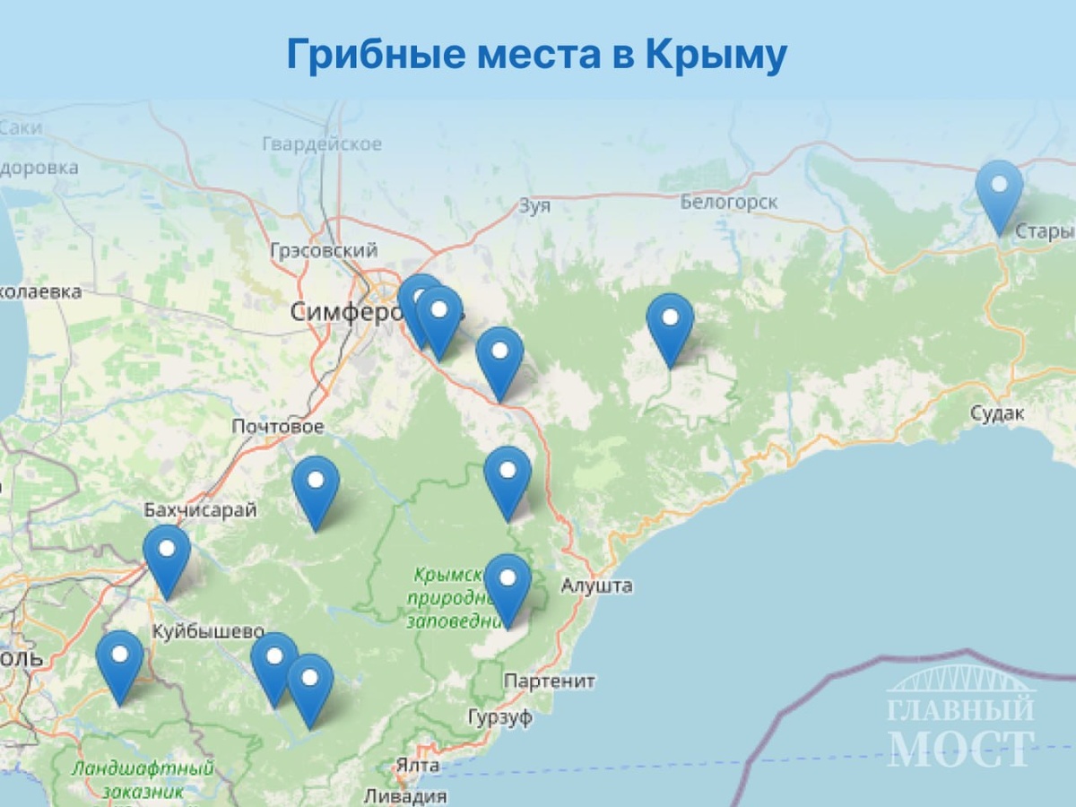 Путники сообщают, что в лесах Крыма вновь активно набирает обороты «тихая охота». Делимся картой грибных мест, которые актуальны не первый год 🤓