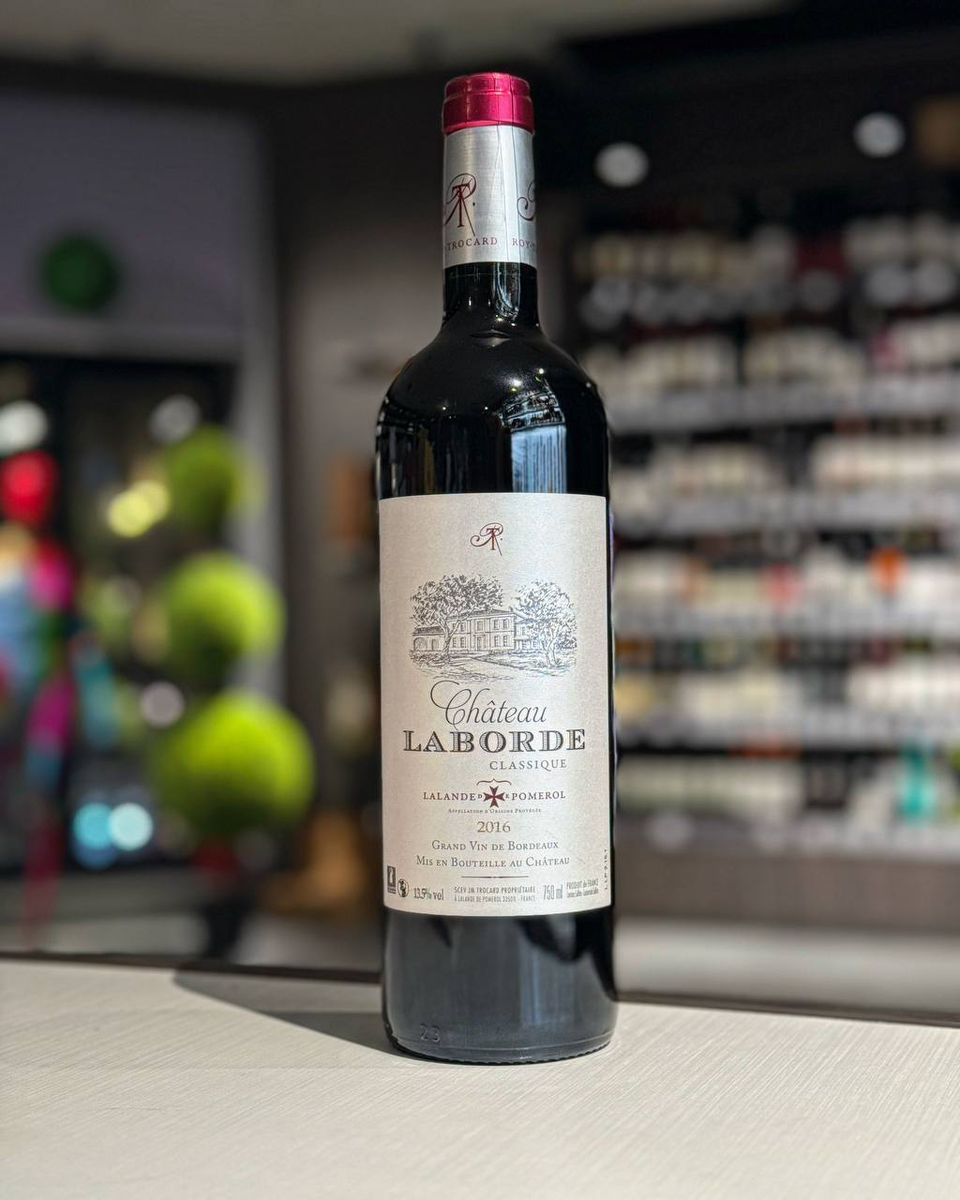 Французское красное сухое вино "Chateau Laborde" создано из традиционных бордоских сортов Каберне Совиньон и Мерло, которые выращиваются в апелласьоне Лаланд-де-Помроль на правом берегу Бордо.