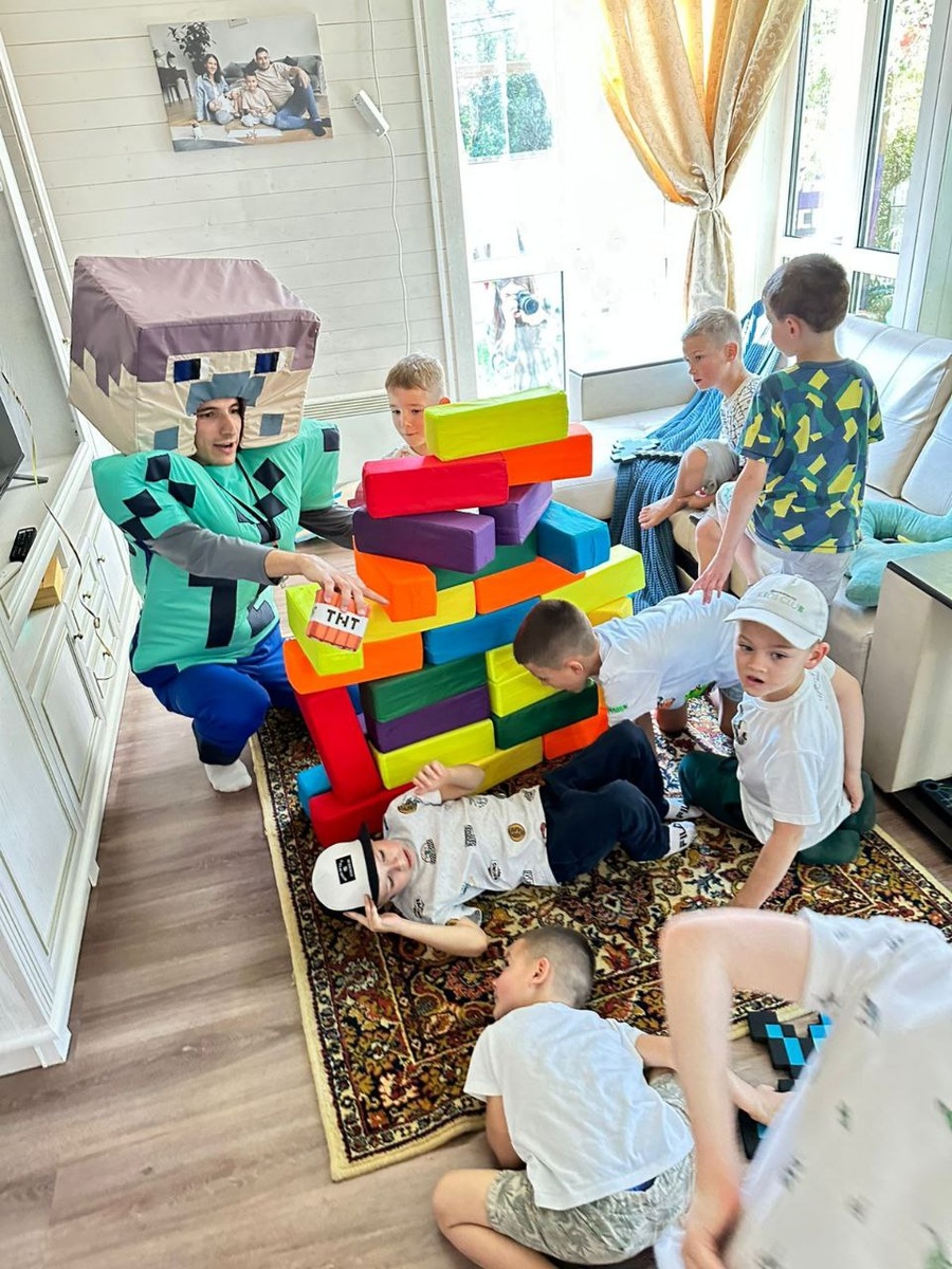 🧱 Майнкрафт на день рождения 🧱 🔹️Всем доброго субботнего утра! Такие вот стенки из поролоновых брусков строим со Стивом на празднике 😁 🔹️Разнообразие цветов, как сейчас осенняя листва на деревьях, всё ярко и броско🤩. Майнкрафт подходит ребятам от 7ми до 10ти лет✍️. На празднике с ним много тематического реквизита, алмазный меч, топор... ⚒️ #Рубрика_Персонажи #Майнкрафт