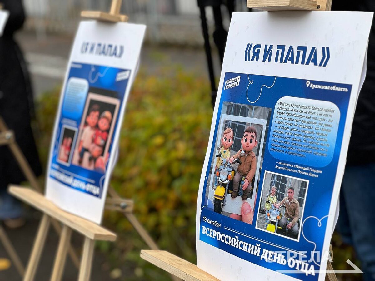 ✨В преддверии Дня отца в Советском районе города Брянска у СОШ № 9 открылась выставка, организованная «Молодой Гвардией Единой России» под названием «Я и папа».