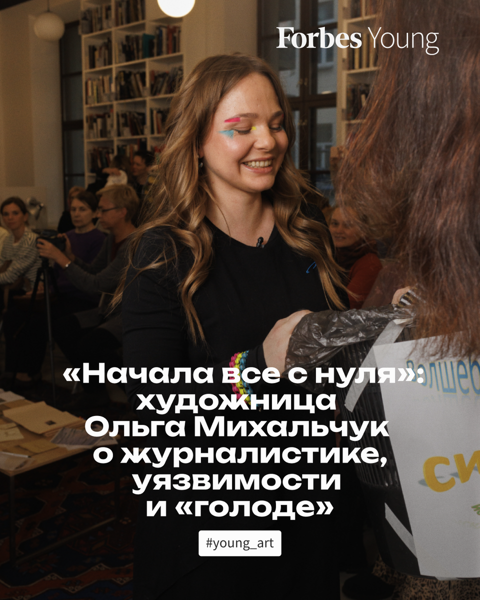 Ольга Михальчук — 36-летняя мультидисциплинарная художница из Москвы. Свой путь в искусстве она начала шесть лет назад, сменив карьеру журналиста на профессию художника, но при этом ее работы уже хранятся в собраниях крупных московских музеев, а также в российских и европейских частных коллекциях. Ее творческие работы — повествовательные, философские, ироничные — выставлялись в десятках музеев и галерей от Тюмени до Рима. О пути Ольги Михальчук в искусство, выгорании в профессии и о том, должен ли художник быть голодным, читайте в статье и на сайте Forbes — Когда ты поняла, что хочешь заниматься искусством? — Мне кажется, я всегда хотела заниматься чем-то смежным с ним: ходила в театральную студию в школе, и мне где-то грезилось, что я, возможно, смогу связать свою жизнь с театром. До сих пор обожаю его, хожу «учиться» на все спектакли Антона Федорова (актер и театральный режиссер. — Forbes Young)… — Но к искусству ты пришла не сразу. — Да, когда пришла пора выбирать профессию,