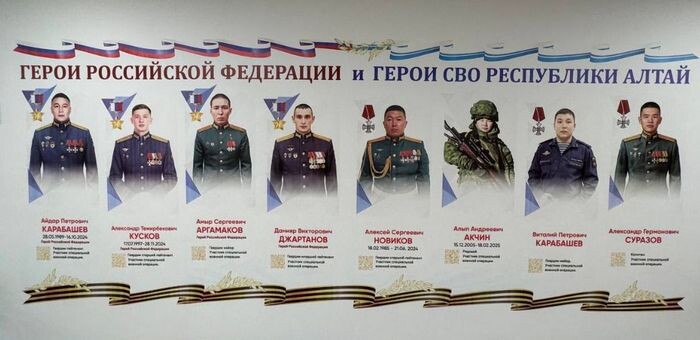 В школе №7 Горно-Алтайска в рамках проекта «Лица Героев» на стену нанесли портреты военнослужащих. На них изображены уроженцы Республики Алтай – Герои России, участники СВО, чьи подвиги стали символом самоотверженности и преданности Родине.