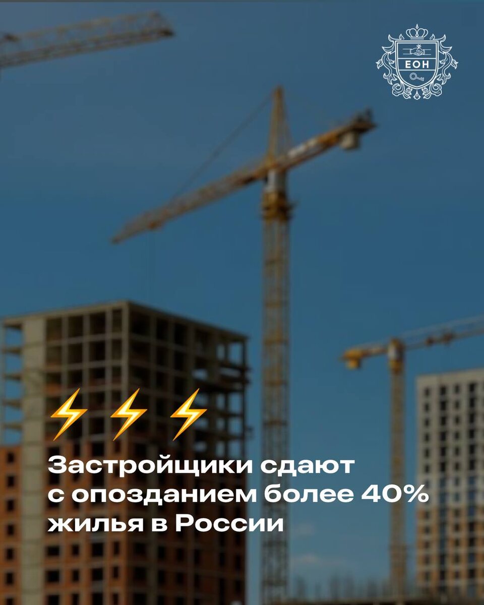 ⚡️Застройщики сдают с опозданием более 40% жилья в России