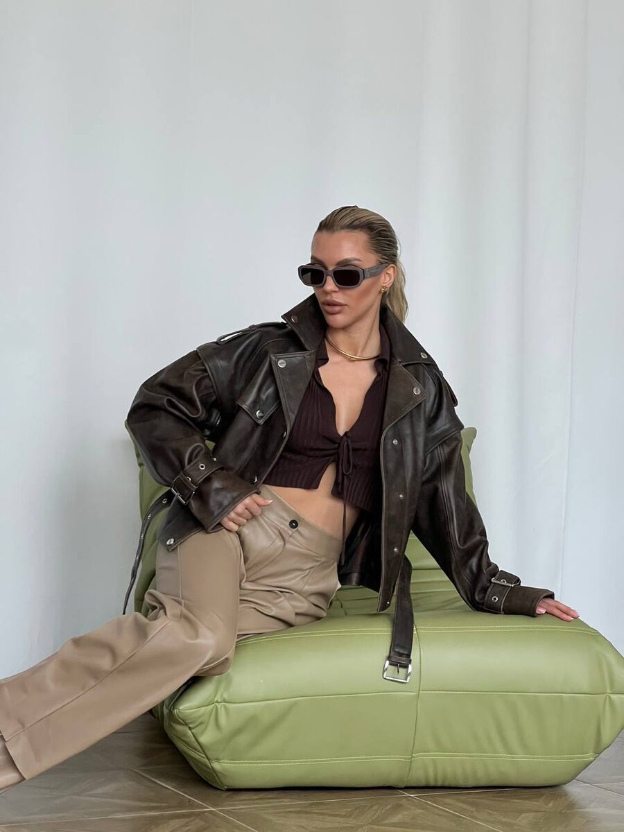 Изделие выполнено из дорогой витражной кожи CALFSKIN VINTAGE 🤎 со съемными рукавами