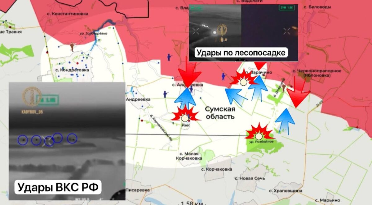 🪂 Сумское направление. ▫️В Алексеевке продолжаются бои за село, противник атакует, пытаясь занять центральную часть села и выбить наши войска. Восточнее от Алексеевки в лесопосадках ВСУ пытаются перебросить живую силу и задействуют для переброски блиндажи и укрепления в лесных посадках, наша авиация нанесла серию ударов, уничтожив личный состав ВСУ. ▫️Ближе к Варачино штурмовые группы ВС РФ зачищают посадки и немного продвинулись вперёд. ▫️Помогает уничтожать логистические маршруты и резервы наша авиация, так в лесном массиве урочище Разбойное, что южнее Варачино, серией авиаударов накрыли вражеские позиции, тем самым изрядно потрепав вражеские силы. 💥За сутки нашими силами было уничтожено порядка 150 военнослужащих противника. ▫️ Дневник Десантника