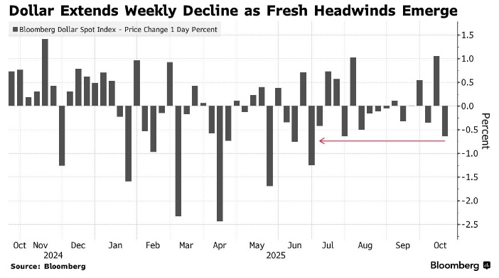 Доллар падает четвертый день подряд, что может стать самым значительным падением за последние два месяца. Причины включают «голубиные» заявления представителей ФРС и опасения по поводу региональных банков США. Уоллер допустил снижение ставок на четверть пункта для поддержки рынка труда, а Стивен Миран предложил снизить их вдвое Доллар уже четыре дня подряд показывает снижение, что может привести к самому значительному падению за более чем два месяца. Это происходит на фоне «голубиных» заявлений представителей Федеральной резервной системы (ФРС) и возросших опасений относительно стабильности региональных банков США. Индекс Bloomberg Dollar Spot за неделю упал на 0,5%, что стало худшим результатом с июля. Доходность двухлетних казначейских облигаций снизилась до шестинедельного минимума. Трейдеры повысили свои ожидания по смягчению денежно-кредитной политики ФРС, прогнозируя снижение процентной ставки на 53 базисных пункта к концу года, что больше, чем 46 пунктов, которые ожидали в среду