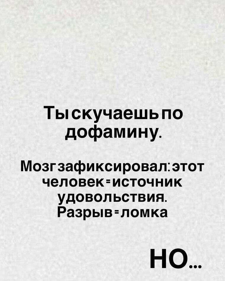 А вот та истеричная, болезненная, навязчивая потребность, которая не дает тебе жить — это тоска по дофамину. По тому самому «кайфу», который ты научился получать только из одного, теперь недоступного, источника.