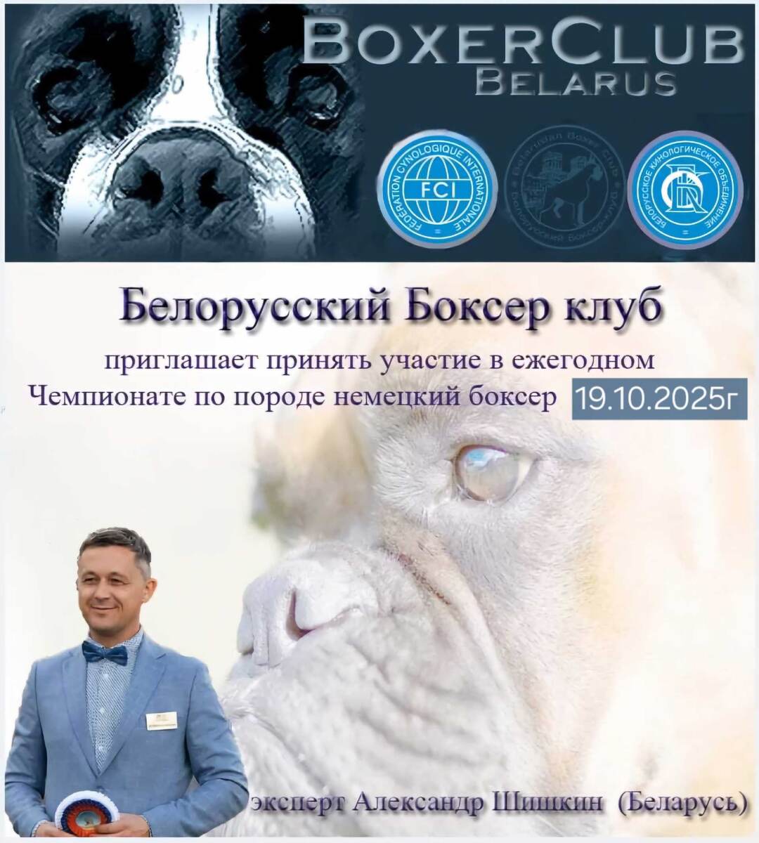⏰ 19 окт (2д) 🏛 #Минск #Беларусь #Выставка 🐶 Выставка собак: Белорусский Боксер-клуб 🏆 Белорусский Боксер-клуб Контакты организаторов здесь: 🌐 https://www.petsman.ru/vystavki-sobak.php?mesto=74-minsk Чемпионат немецких боксеров 🧑 👨 Эксперты: 🔹 Александр Шишкин