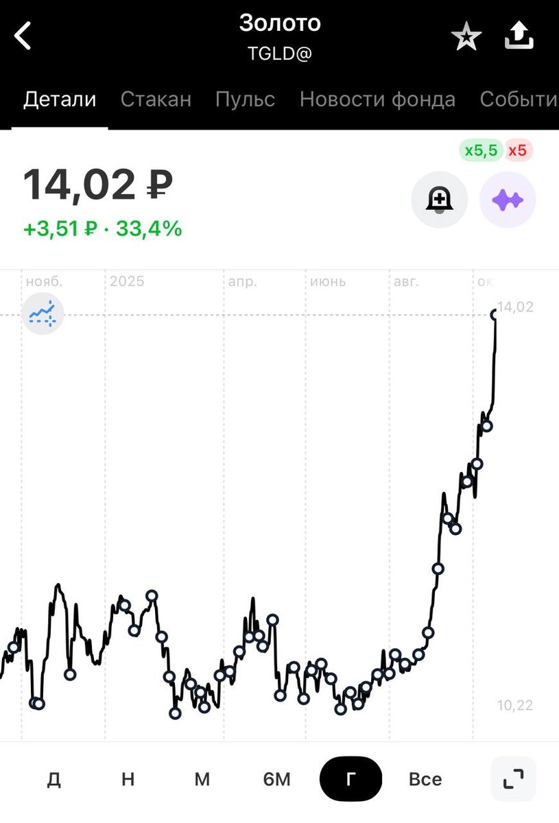 Также продолжаю еженедельно докупать #фонд $TGLD@ на #иис , чтобы довести долю до планируемых 5% портфеля