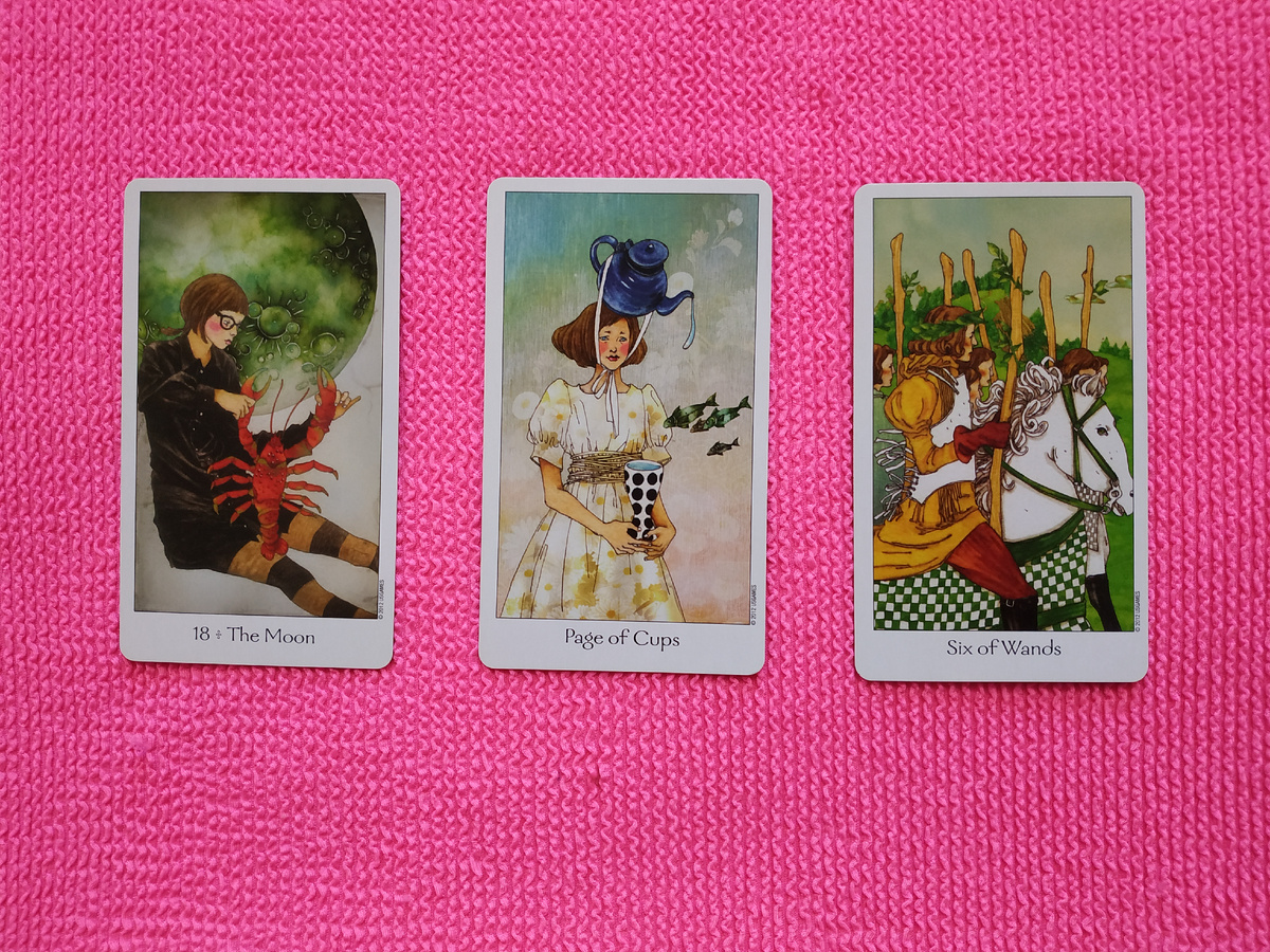 В его сердце — романтическое волнение. Как у человека, который только начал понимать, что влюблён. Паж Кубков — это робость, трепет, зарождающееся чувство. Он может вести себя немного неловко в вашем присутствии, стесняться, сбиваться, теряться. Или наоборот — вести себя весело и беззаботно, чтобы скрыть волнение. Хочет быть ближе, но боится, что это покажется слишком навязчивым. Поэтому выбирает мягкую форму интереса — знаки внимания, добрые слова, лёгкие касания. Он пока не решается сказать прямо, но уже настроен на эмоциональный отклик. Ждёт вашего взгляда, одобрения, улыбки. Это чувство делает его живым. И вы — его вдохновение, даже если ещё не сказал вам об этом вслух.