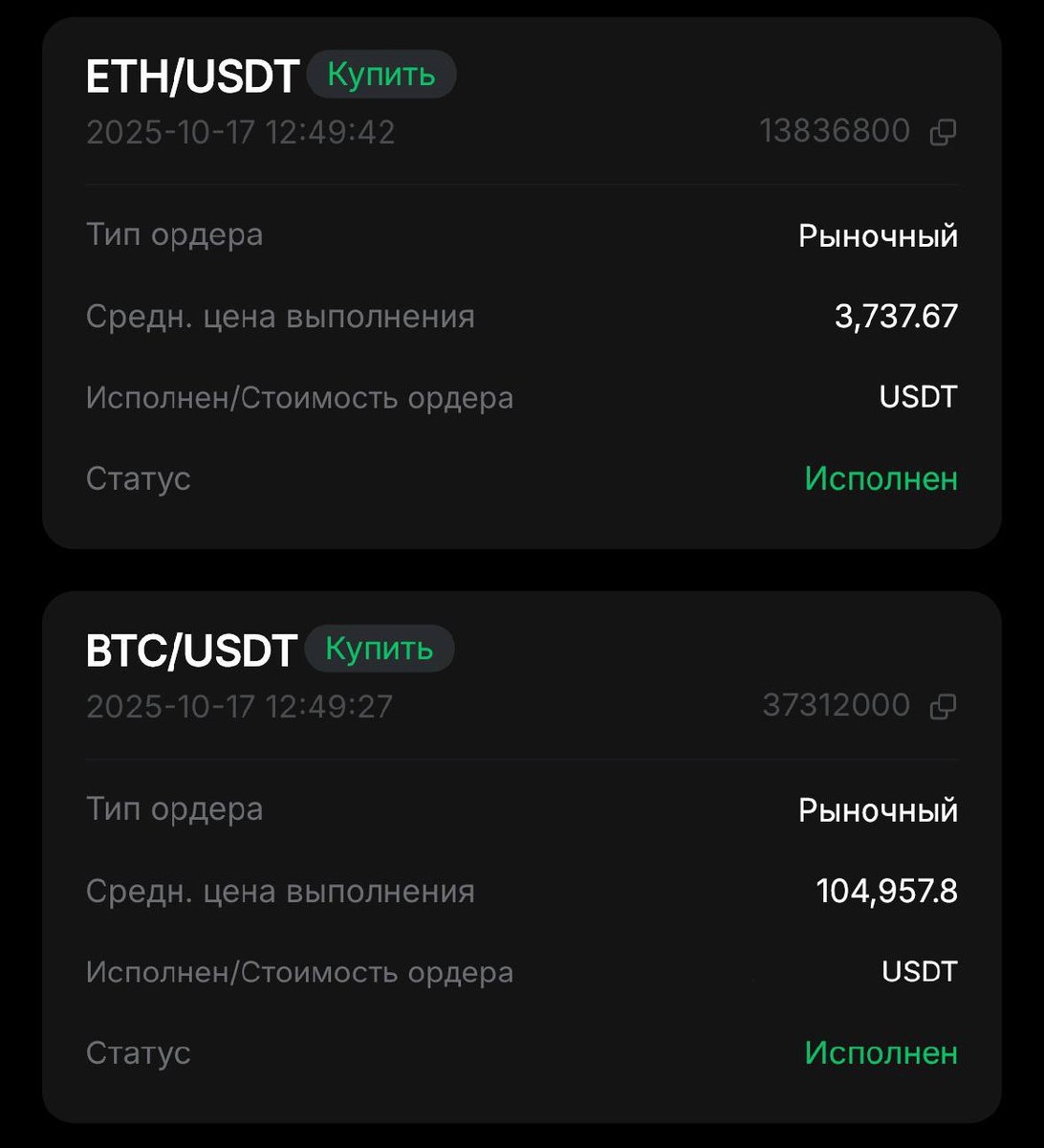 🔥 Все продают, а я покупаю - BTC по 104 958 - ETH по 3 737 У кого-то паника, а я просто вижу скидки 😀 ❗️Где и как я покупаю: https://youtu.be/NBwGitEaJjE Telegram | YouTube | Все гайды