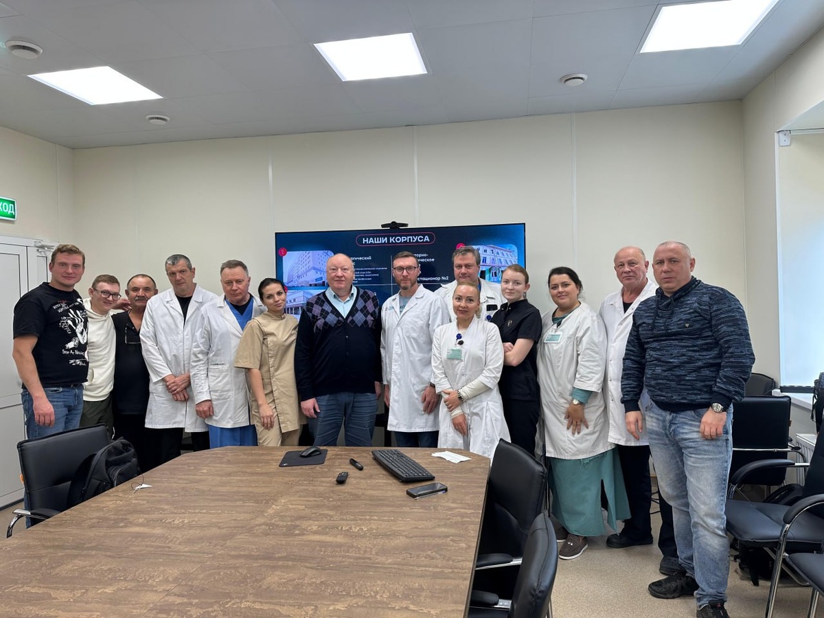 Врачи Томского областного онкологического диспансера приняли участие в рабочем визите в Запорожскую область. В составе делегации от Томской области врачи Томского областного онкологического диспансера посетили Запорожскую область. Цель поездки заключалась в развитии профессионального сотрудничества и обмене клиническим опытом между специалистами. Основной площадкой для работы стал областной онкологический диспансер в Мелитополе, где прошли встречи, совещания и совместная практическая работа. В первый день визита состоялась рабочая встреча с министром здравоохранения Запорожской области Дмитрием Витальевичем Ваньковым. В ходе беседы обсуждались вопросы развития онкологической службы региона, взаимодействия профильных учреждений и возможности дальнейшего обмена опытом между медицинскими организациями. В составе группы работали главный врач Томского областного онкологического диспансера, кандидат медицинских наук Максим Юрьевич Грищенко, онколог и хирург отделения абдоминальной и торак