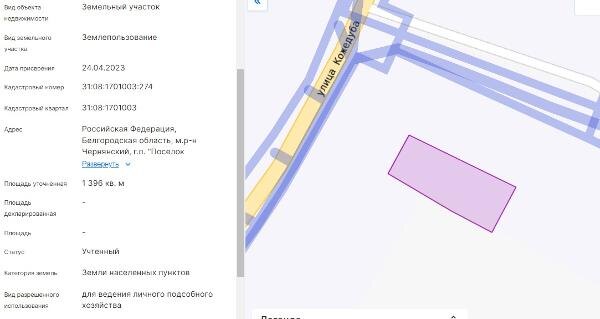 Название: Земельный участок с кадастровым номером 31:08:1701003:274, расположенного по адресу: Российская Федерация, Белгородская область