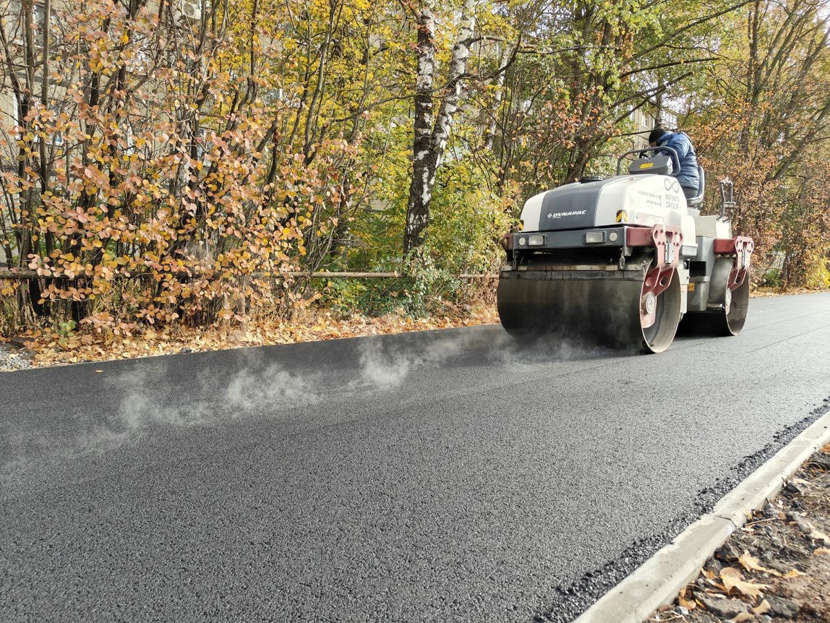 Дорожники приступили к укладке асфальтобетонного покрытия на пешеходном тротуаре по Мичуринской.