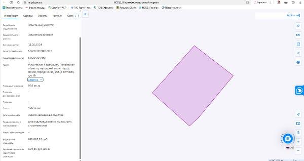 Название: Адрес: Российская Федерация, Пензенская область, городской округ город Пенза, город Пенза, улица Тютчева, з/у 19. Площадь: 993 кв. м. Кадастровый номер: 58:29:3017001:902. Разрешенное использование (назначение): для индивидуального жилищного строительства. Канал: Госземля Пензенская область Область: обл Пензенская Район: г.о. город Пенза Населенный пункт: г Пенза, ул Тютчева Локация: Смотреть на карте ВРИ: Для индивидуального жилищного строительства Кадастровый номер: 58:29:3017001:902 Кадастровая стоимость: 618092.85 Вид сделки: Аренда Площадь: 993 м² Начальная цена: 618092.00 руб. Дата завершения: 12.11.2025 Подробнее: ГИС ТОРГИ #госземля #земляотгосударства #земля #земельныйучасток #земельныеторги #торги #аукцион #арендаземли #аренда #пензенскаяобласть