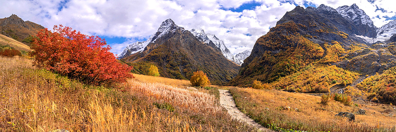 Между снежными вершинами и огненными склонами время словно замедляется, чтобы передать красоту каждого мгновения. А наш фотограф успел не только насладиться невероятной атмосферой, но и запечатлеть ее. Дорога уходит в горы, воздух становится чище, а мысли — тише. Красота Домбая не требует лишних слов: здесь склоны вспыхивают оттенками меди и охры, вершины шепчут о вечности, солнце пробивается сквозь облака и все вокруг превращается в живую картину. Фото: Арсен Алабердов/ТАСС