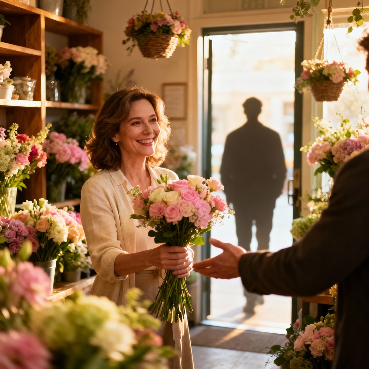 — Вы выбирали цветы с такой любовью и заботой, — продолжал Даниил. — Я видел, что вам самой нелегко. Это было заметно. Но вы всё равно старались подарить красоту другим. Я начал приходить к вам регулярно, просто заказывал букеты, наблюдал. Потом узнал от вашей подруги, что вы недавно развелись. И тогда я понял – вы именно та женщина, о которой писала Ольга. Та, кто знает, что такое боль, но не разучилась любить жизнь.