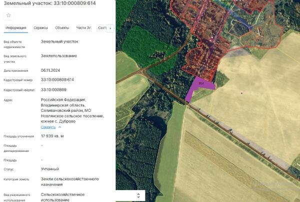 Название: Земельный участок из категории земель земли сельскохозяйственного назначения, с кадастровым номером 33:10:000809:614, адрес