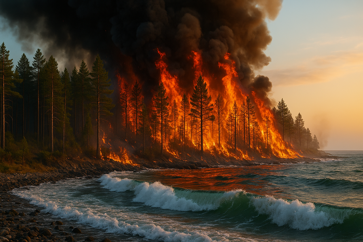 🔥 Когда горят леса у самого побережья, кажется, решение лежит прямо перед глазами — миллионы тонн воды в шаге от пожара. Море рядом. Черпай — не хочу. Но реальность устроена иначе: пожарные запускают вертолёты, летают за десятки километров за пресной водой, тянут шланги от рек и озёр. А море — стоит себе спокойное, солёное, бесполезное. Почему? Потому что морская вода — это не спасение, а экологическая ловушка. Настоящий яд для земли. Вода есть. И её много. И она совсем рядом. Почему же нельзя просто качать её насосами и заливать пылающие деревья? Ведь логика подсказывает: тушить нужно быстрее, а море — самый доступный источник. Но именно тут и скрывается тот самый подвох, о котором не пишут в новостях. Морская вода может нанести лесу вред похлеще самого огня. И вот почему. В каждом литре морской воды — до 35 граммов солей. Это не просто щепотка соли, как в супе, а химический коктейль, который, попав на землю, начинает разрушать экосистему буквально с первого же контакта. Когда морска