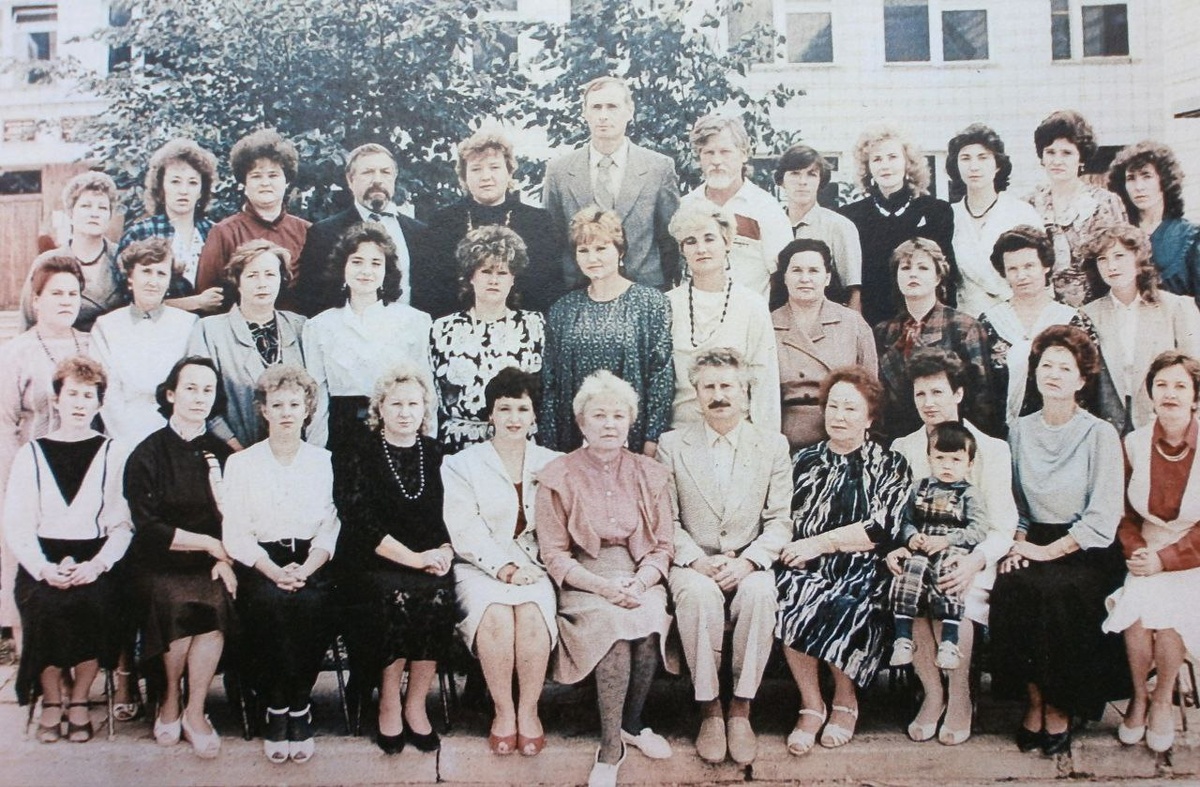 На фотографии 1990 года запечатлён коллектив учителей 119-ой школы и её директор Юрий Ефимович Зюриков.
