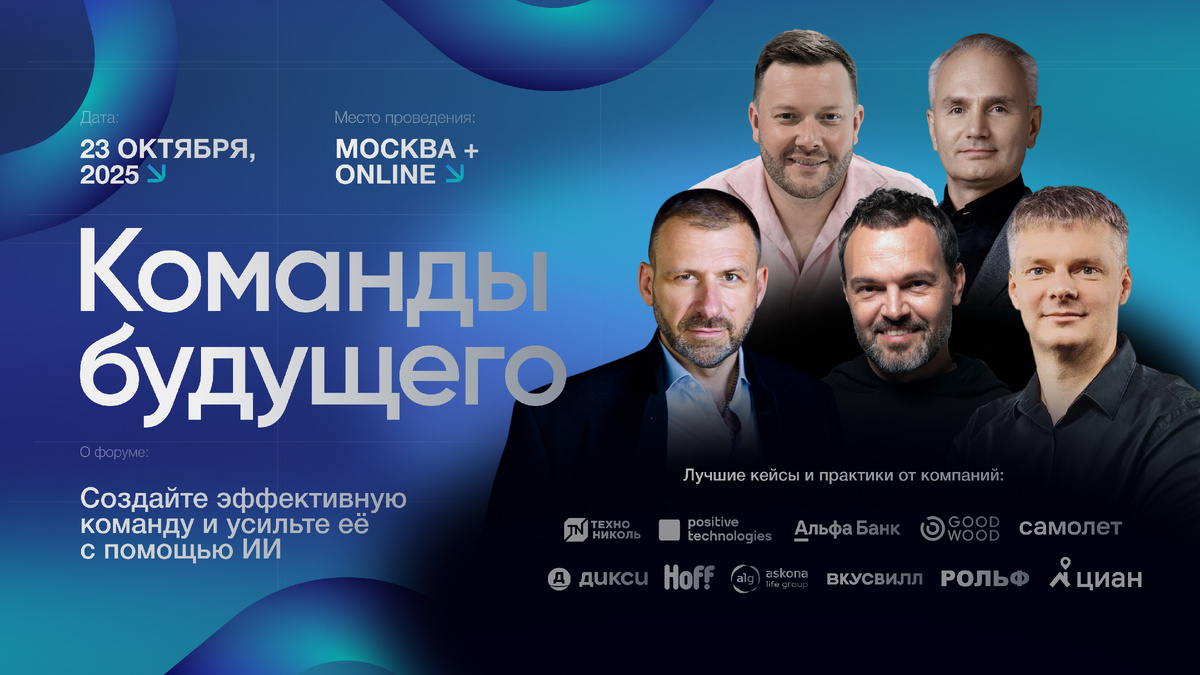 ИИ меняет правила бизнеса. Ваша команда готова к будущему? 📅 23 октября, Москва + online. Форум «Команды будущего» — о том, как строить эффективные команды, усиленные ИИ. Что вас ждет: •1500 участников: собственники, топы и HR-директора. •30 спикеров от лидеров рынка: Hoff, ЦИАН, Технониколь, GOOD WOOD и других. •3 ключевых направления: команды и лидерство, HR и AI. Практическая польза: никакой теории — только работающие инструменты для масштабирования и построения команды, готовой к вызовам. VIP-день для 150 участников: •Закрытая встреча с Сергеем Колесниковым и Игорем Рыбаковым. •Тренинг от Рината Алиева (ex-Red Bull) о сильных командах. •Лекция Николая Прянишникова (ex-Microsoft, ex-Билайн) о лидерстве. Получите конкретные инструменты и доступ к опыту мирового уровня. Успейте приобрести билет: https://future-teams.ru Скидка 20% по промокоду: нейрофакт