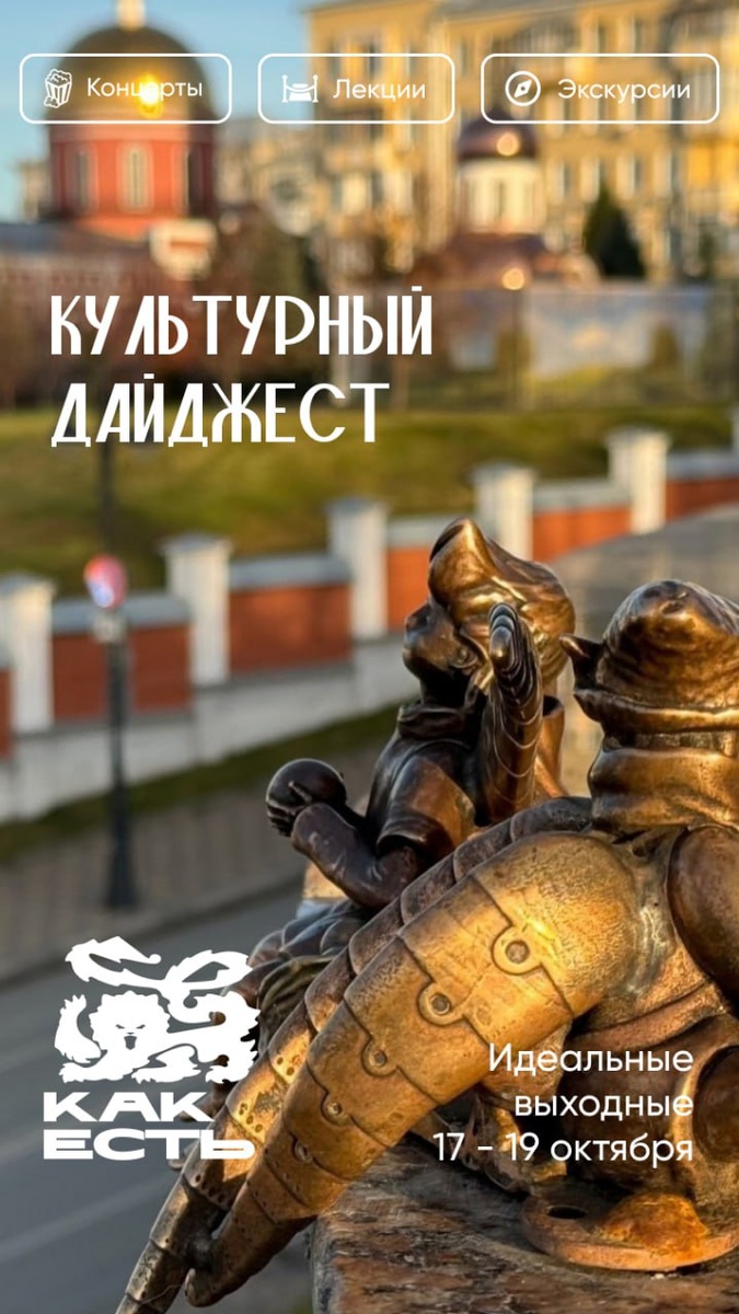 Культурный дайджест на выходные ☀️ 17—19 октября Середина октября — время, когда осень показывает всю свою красоту. Город живет в особом ритме, и каждый вечер становится поводом для чего-то важного. Эти выходные вам подарят туры по барам и лекции о советской электронной музыке, квартирники с Ковальски, мастер-классы и дни рождения любимых мест. А еще — киновечера легендарных «Сумерек», встречи киноклуба и программы в планетарии. Октябрь учит нас ценить каждую встречу и каждый момент. Не позволяйте этому выходному пройти мимо — они созданы для того, чтобы ими наслаждаться! 〰️〰️〰️〰️〰️〰️〰️〰️〰️ Все события на выходные в нашей афише 👈 🥐 #дайджест