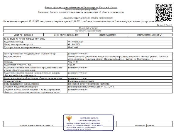 Название: Сведениями о фактическом состоянии объекта недвижимости организатор торгов не располагает Канал: Госземля Иркутская область Область: обл Иркутская Район: м.р-н Ольхонский Населенный пункт: с.п. Бугульдейское, д Куртун, ул Центральная, дом 16 Локация: Смотреть на карте ВРИ: Для ведения личного подсобного хозяйства (приусадебный земельный участок) Кадастровый номер: 38:13:020101:29 Кадастровая стоимость: 7723.44 Вид сделки: Продажа Площадь: 7572 м² Начальная цена: 2359300.00 руб. Дата завершения: 18.11.2025 Подробнее: ГИС ТОРГИ #госземля #земляотгосударства #земля #земельныйучасток #земельныеторги #торги #аукцион #продажаземли #продажа #иркутскаяобласть