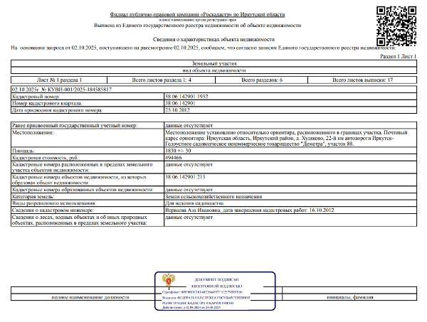 Название: Сведениями о фактическом состоянии объекта недвижимости организатор торгов не располагает Канал: Госземля Иркутская область Область: обл Иркутская Район: м.р-н Иркутский Населенный пункт: с.п. Ушаковское, д Худякова Иркутская обл., Иркутский р-н, д. Худяково, 22-й км автодороги Иркутск-Голоустное, садоводческое некоммерческое товарищество «Деметра», 88. Локация: Смотреть на карте ВРИ: Ведение садоводства Кадастровый номер: 38:06:142901:1932 Кадастровая стоимость: 494466.00 Вид сделки: Продажа Площадь: 1830 м² Начальная цена: 483900.00 руб. Дата завершения: 18.11.2025 Подробнее: ГИС ТОРГИ #госземля #земляотгосударства #земля #земельныйучасток #земельныеторги #торги #аукцион #продажаземли #продажа #иркутскаяобласть