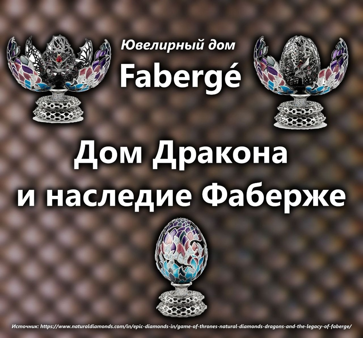 В 2021 году ювелирный дом Fabergé и отмеченный наградами телесериал HBO® «Игра престолов» объединились, чтобы создать уникальный шедевр за 2,2 миллиона долларов США: яйцо Фаберже "Дракон" из «Игры престолов». Для воплощения своего видения в жизнь, создатели обратились к сложному искусству эмалирования, тесно связанному с Питером Карлом Фаберже, который считался мастером древней техники орнаментации, создав более 145 новых цветов в течение своей эпохи. Чтобы наполнить яйцо Фаберже «Игра престолов» энергией, жизнью и огнем, команда использовала натуральные бриллианты в сочетании с яркими цветами эмалевой чешуи, покрывающей всю внешнюю скорлупу яйца. Лииса Талльгрен, дизайнер Fabergé, поясняет: «Цель objet d'art — интриговать и восхищать, как и в случае с картиной или скульптурой. Благодаря разнообразным повторениям и изменениям формируется ритм: например, Яйцо имеет эмалевые ячейки определенной длины, затем часть, инкрустированную натуральными алмазами, за которой следует снова эмаль. Гл
