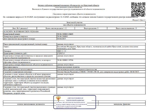 Название: Сведениями о фактическом состоянии объекта недвижимости организатор торгов не располагает Канал: Госземля Иркутская область Область: обл Иркутская Иркутская обл. Район: Иркутский р-н Населенный пункт: сп. Уриковское, с. Урик. Локация: Смотреть на карте ВРИ: Жилая застройка Кадастровый номер: 38:06:100801:20405 Кадастровая стоимость: 272937.40 Вид сделки: Продажа Площадь: 1004 м² Начальная цена: 610000.00 руб. Дата завершения: 18.11.2025 Подробнее: ГИС ТОРГИ #госземля #земляотгосударства #земля #земельныйучасток #земельныеторги #торги #аукцион #продажаземли #продажа #иркутскаяобласть