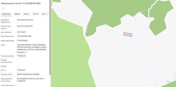 Название: право заключения договора аренды земельного участка из земель населенных пунктов с кадастровым номером 71:09:020103:384, площадь