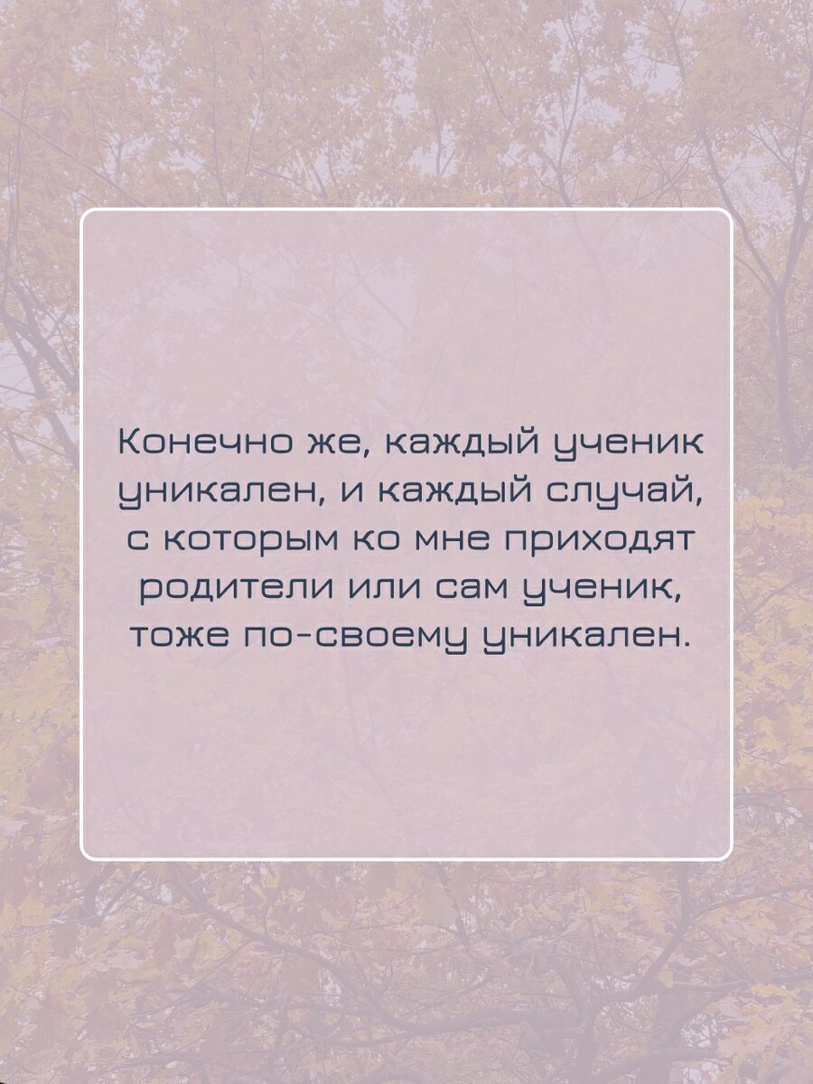 Конечно же, каждый ученик уникален, и каждый случай, с которым ко мне приходят родители или сам ученик, тоже по-своему уникален. ✨