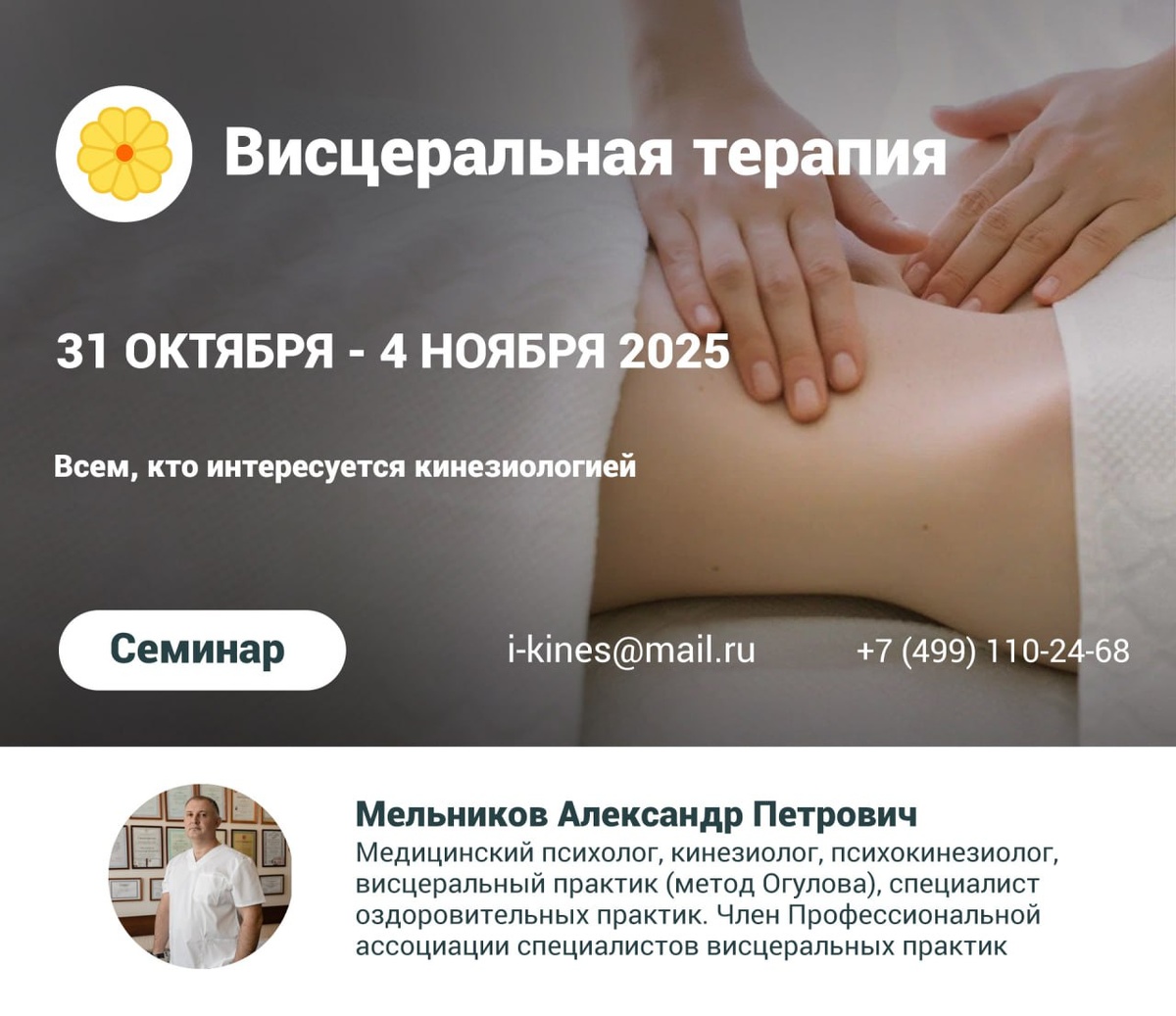 Приглашаем на семинар "Висцеральная терапия", который будет проведен с 31 октября по 4 ноября 2025 года
