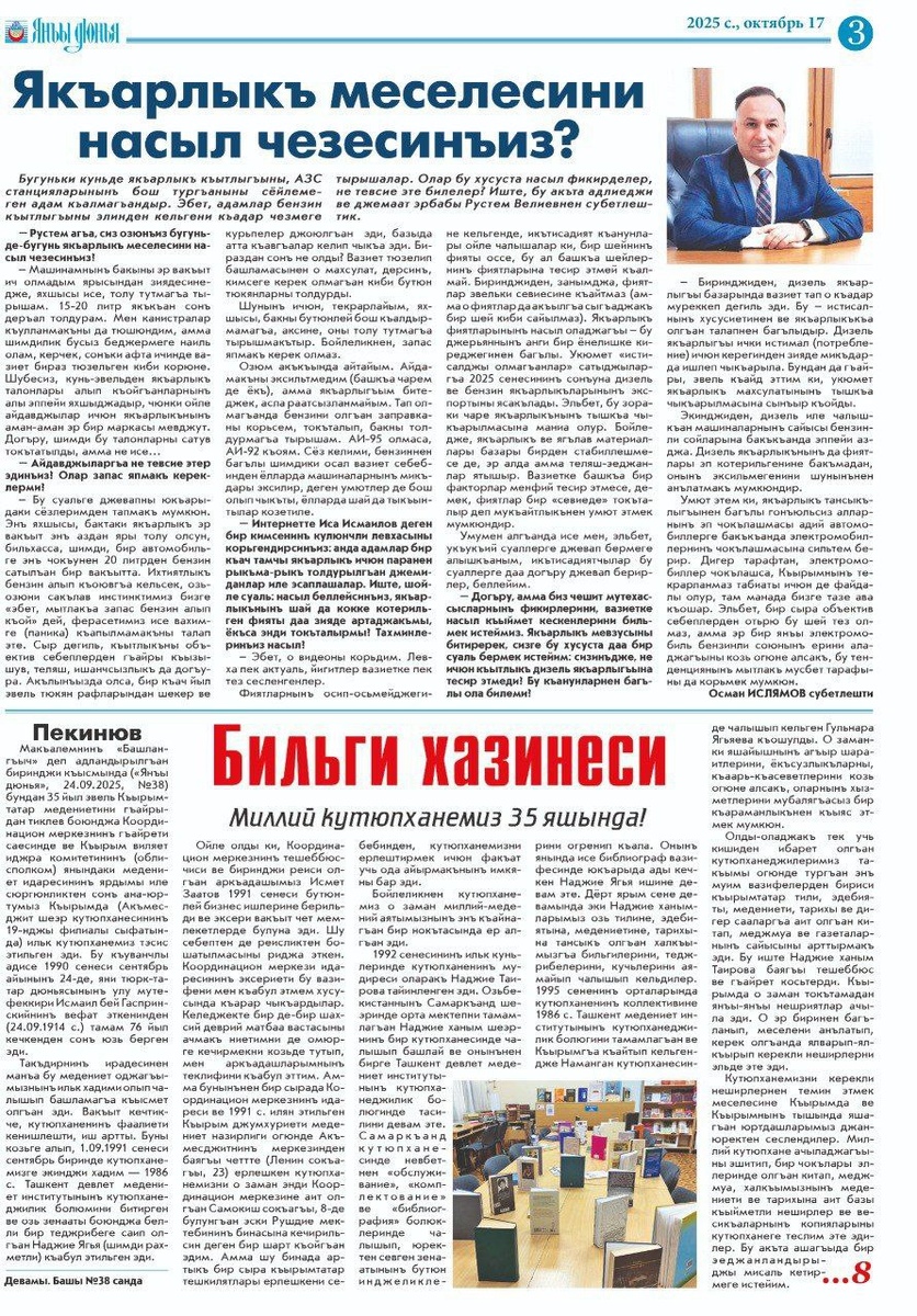 В сегодняшнем номере газеты "Янъы дюнья" опубликовано моё интервью относительно сложившейся ситуации с топливом в Крыму.