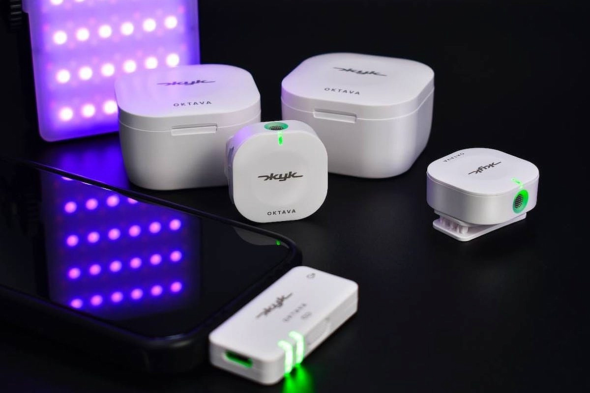 Устройство состоит из миниатюрного передатчика с магнитным креплением и компактного приёмника, обеспечивающего передачу аудиосигнала с минимальной задержкой.