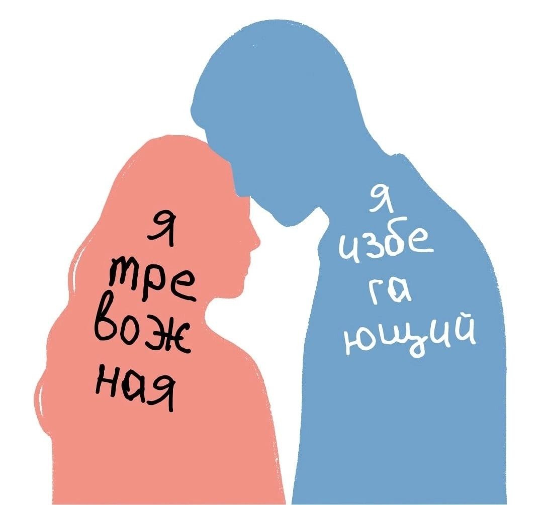 Очень хороший наглядный пример пары избегающий-тревожная.