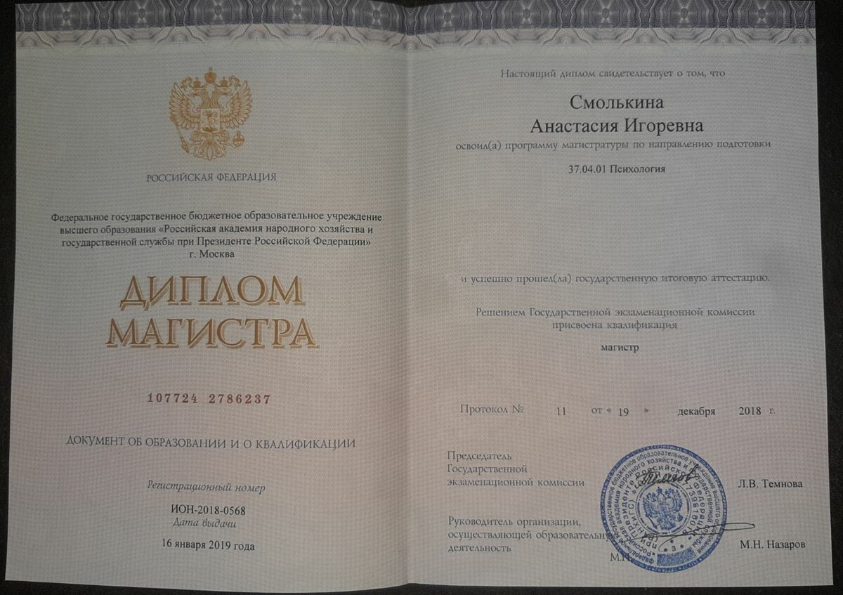 Камера, мотор, выходим из тени! Меня зовут Анастасия, и я... психолог! Бывает, что человек выбирает профессию, а бывает, что жизненные обстоятельства вынуждают избрать стезю. Но иногда сама Вселенная как бы намекает тебе, по какому пути пойти. Считаю своё рождение у психолога в День психолога именно таким знаком! Как вы уже догадались, с самого детства и по сей день мы с психологией неразлучны. Одни из самых тёплых воспоминаний детства у меня из психологического центра в Солнцево, где работала моя мама и куда меня частенько брали с собой вплоть до начала школы. Арт-терапия, тесты, различные методики — это всё моё родное. Закончила бакалавриат по программе «Психология. Акмеология» и магистратуру по клинической психологии в РАНХиГС. Однако моя профессиональная любовь — это психодрама. Однажды соприкоснувшись с ней, я была очарована глубиной и эффективностью этого метода, поэтому отучилась в ИПКиРТ у Елены Лопухиной. Являюсь сертифицированным психодраматерапевтом, групповым терапевтом и с