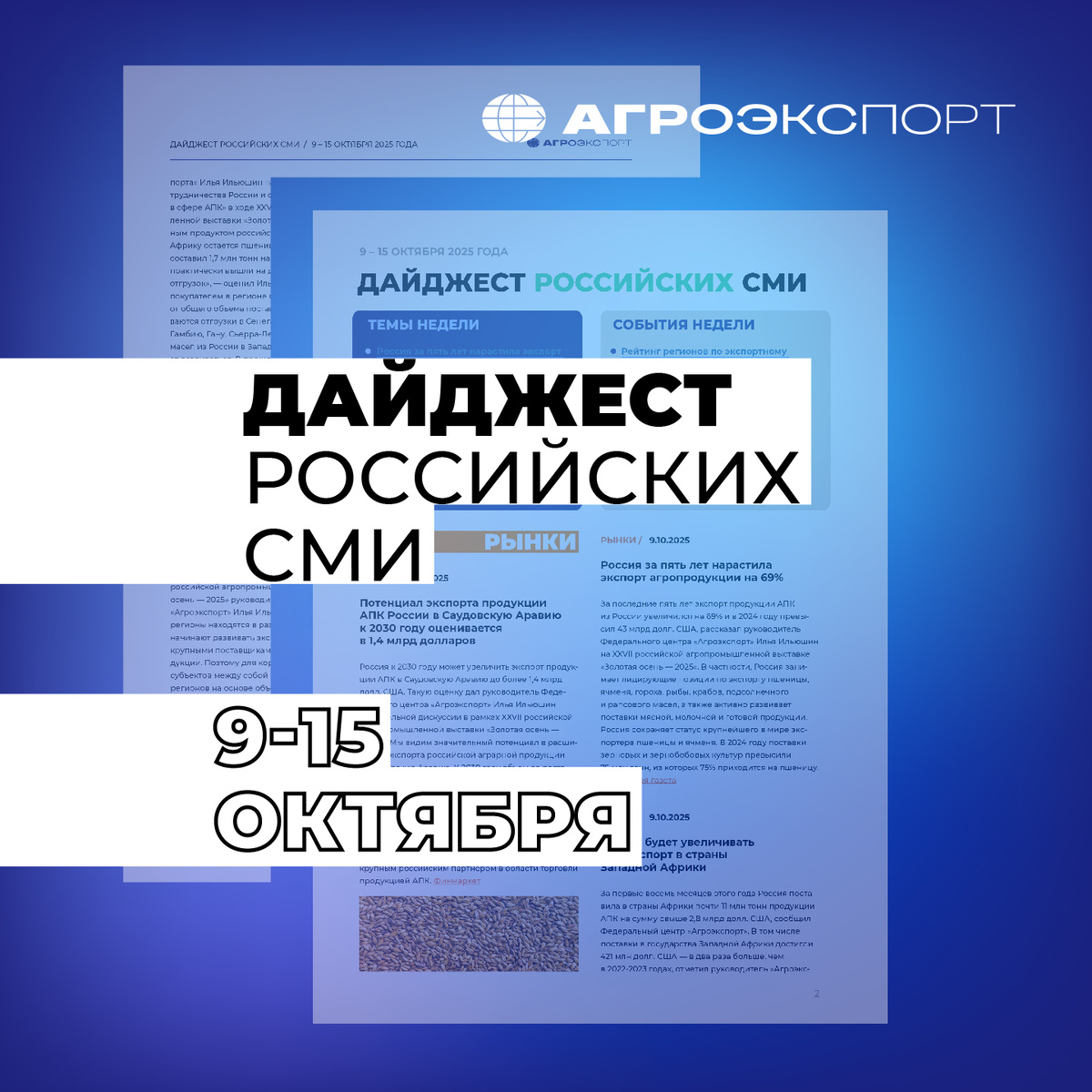 ✅Рейтинг регионов по экспортному потенциалу АПК представили на «Золотой осени — 2025»;