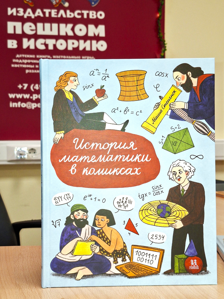 Встречайте! История математики в комиксах. Когда и для чего человек начал считать предметы вокруг себя? А наблюдать за звёздами и составлять календари? Зачем ему понадобились дроби и длина окружности? Кому в голову пришло извлекать корень из двух или вычислять мгновенную скорость? И вообще, кто, когда и почему начал заниматься математикой? В этой книге увлекательно и остроумно рассказывается история этой науки — от создания цифр до изобретения мнимых чисел, от построения прямоугольных треугольников до искривлённых пространств Лобачевского и Римана, от наблюдения за созвездиями до открытий Ньютона и Эйнштейна. И всё это в форме смешных, а порой невероятных историй, где математики разных эпох и разных стран спорят, экспериментируют, шутят и даже устраивают пикники. От Египта до Китая, от Индии до Греции — история математики соединяет континенты и тысячелетия. Эта книга станет прекрасным дополнением к школьному курсу математики и информатики. МАРИЯ СТЕПАНОК, автор и художник книги