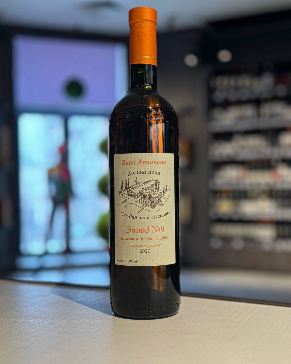 "Вина Арпачина" Этюд №9 - ростовское розовое сухое вино, в производстве которого используется виноград сорта Цимлянский Черный.