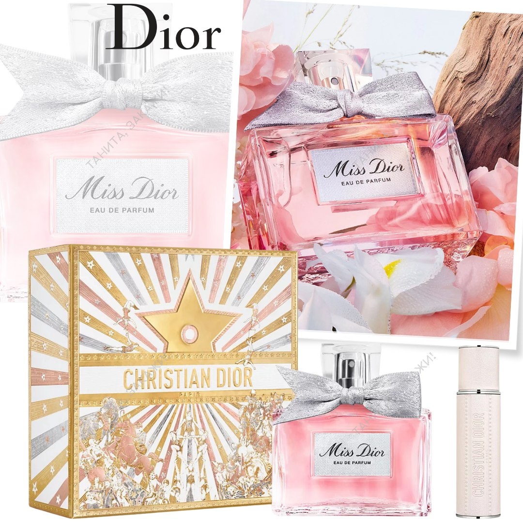 Dior Подарочный набор (женский раздел) 25300₽ + доставка Парфюмерная вода Miss Dior 100 мл,и 10 мл. Верхние ноты: Ирис, Пион и Ландыш; средние ноты: Роза, Абрикос и Персик; базовые ноты: Ваниль, Мускус, Бобы тонка, Сандал и Бензоин. 📩 @tanita_sadovnik 🚚 Доставка 4-6 недель 📦 ✅ 100% оригинал 🇺🇸