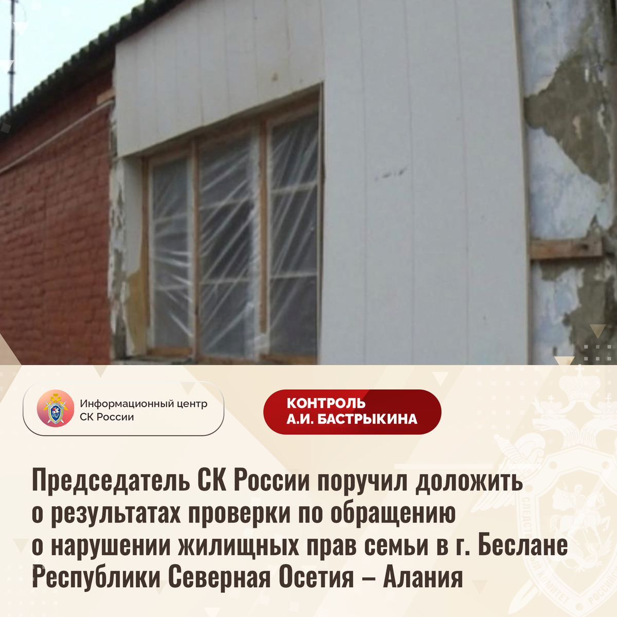 Председатель СК России поручил доложить о результатах проверки по обращению о нарушении жилищных прав семьи в г. Беслане
