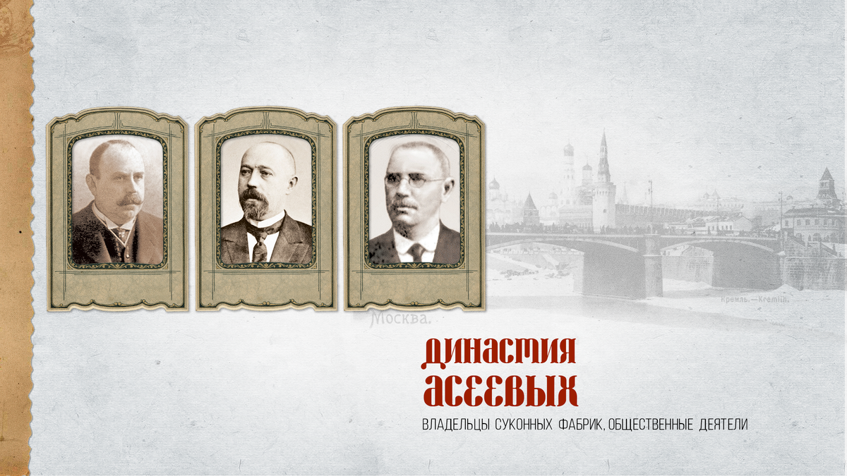 В начале прошлого века вся Российская империя была знакома с продукцией купцов Асеевых — крупнейшей и наиболее влиятельной династии, которая занималась производством суконных тканей. Представителям третьего поколения удалось развить свой бизнес на московском рынке, открыть в городе и в других губерниях собственные склады-магазины.