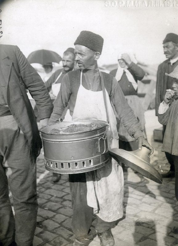 Продавец чебуреков. Татары крымские. Симферополь?. 1907 год Автор фото: Дубровский М.И. Желатиновая бумага с проявлением (DOP) Из фондов: Российский Этнографический музей, Санкт-Петербург. Инвентарный номер: РЭМ 1315-9 В описании на сайте музея, указано, что фотография сделана в Симферополе. Возможно, это старый симферопольский рынок, что находился на месте нынешнего сквера им. Тренева. На нашем канале есть аналогичное фото продавца чебуреков. Как я понимаю, лоток, с которым ходили продавцы чебуреков, был с подогревом, на древесном угле. Также, по ссылке вы можете посмотреть специальные крымскотатарские ножи для изготовления чебуреков #этнография #крымскиетатары #Дубровский #общепит #чебуреки