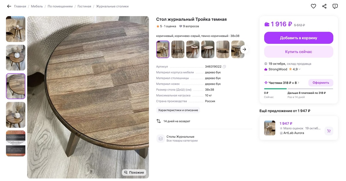 источником идей и хорошего настроения! Круглая столешница из массива бука, простые, но изящные линии и вот он, маленький герой моего интерьера. Стол выдерживает до 10 кг, что позволяет ставить на него книги, журналы, вазу с цветами или чашку кофе. А текстура дерева с естественными микротрещинами придаёт столу характер и ощущение уникальности. Теперь мой уголок для чтения и чаепития стал ещё уютнее, а гости не устают спрашивать: «Откуда такой стол?» Артикул 346319022 Два стакана по 300 мл, прозрачное стекло с пузырьками и аккуратными сердечками. Каждое утро они превращают обычный завтрак в маленький ритуал: кофе или сок в этих стаканах словно становятся особенными. Они подойдут для повседневного использования, коктейлей или десертов, и, честно, каждый глоток - это немного романтики прямо на вашей кухне. Артикул 449690317 Эта маленькая, но очаровательная подставка